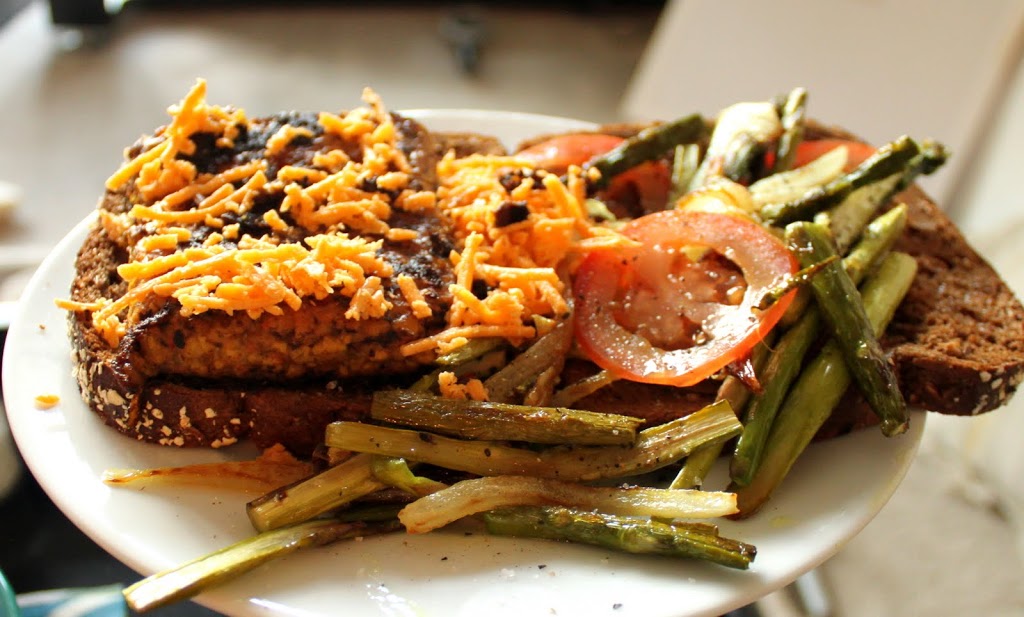 Serve the hot spiced tempeh on toasted Multigrain Loaf, topped with Daiya cheddar, fresh sliced tomatoes, golden cooked onions and asparagus on top and on the side!