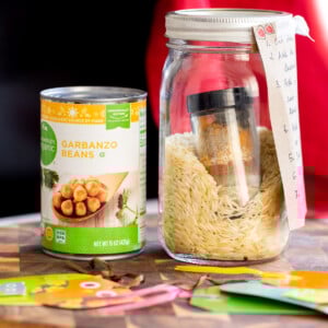 With the jar, you want to include a list of ingredients that are needed to be added along with the instructions for making this Dump and Done Instant Pot Recipe. If you want, you could even include a can of chickpeas in the gift bag. There you are: you basically just gifted an amazing dinner or easy lunch that comes together in minutes. Trust me, people will call to let you know how delicious it was.